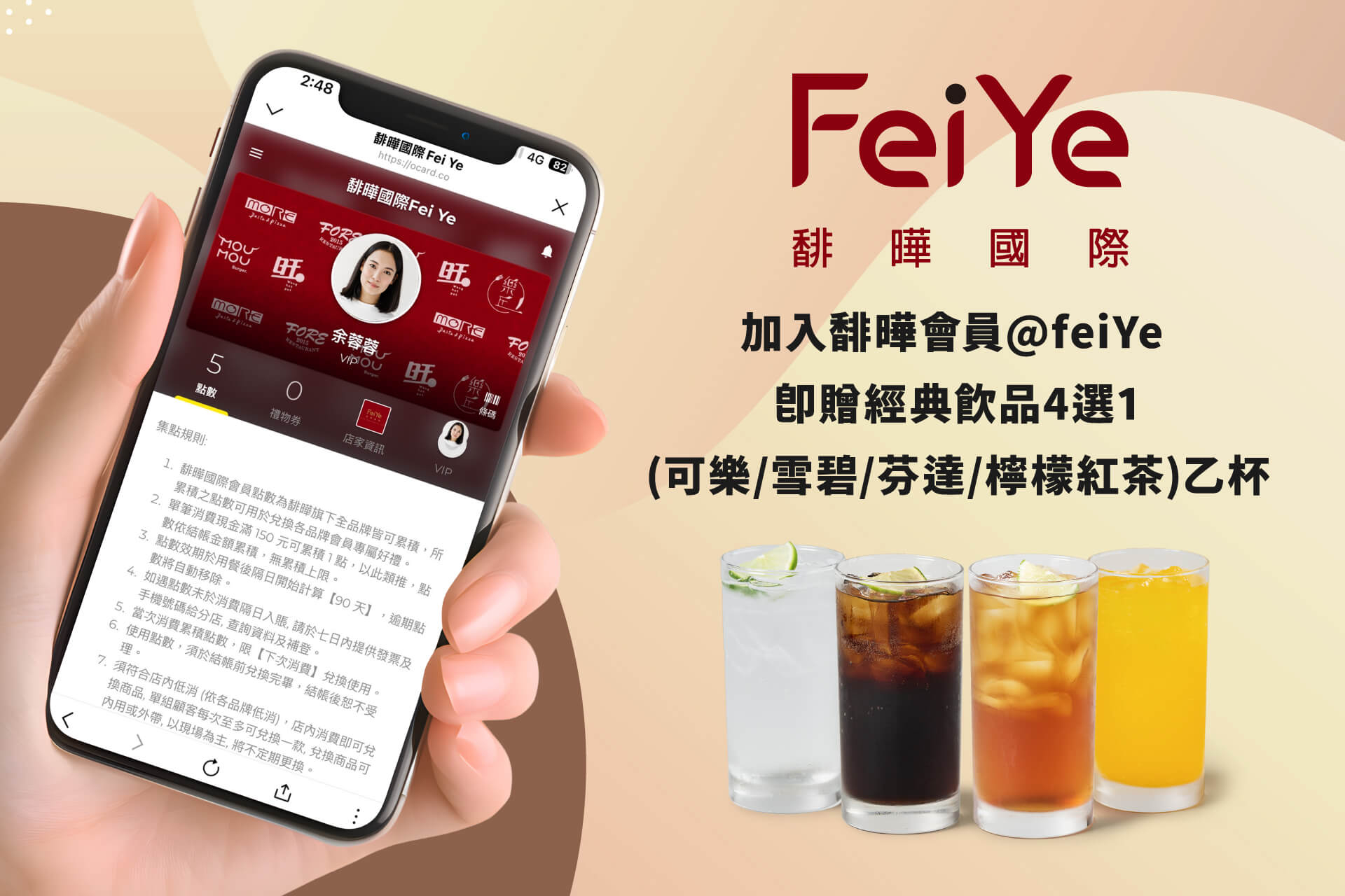 加入馡曄國際會員即贈經典飲品四選一(可樂/雪碧/芬達/檸檬紅茶)乙杯